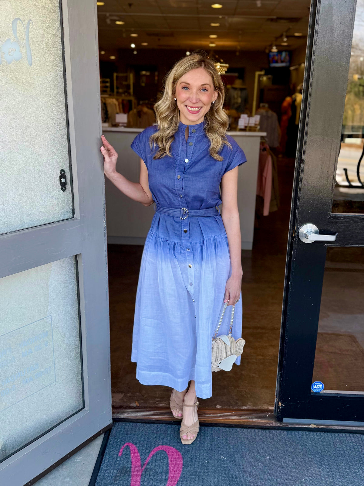 Poplin Sleeveless Belted Dress in Blue