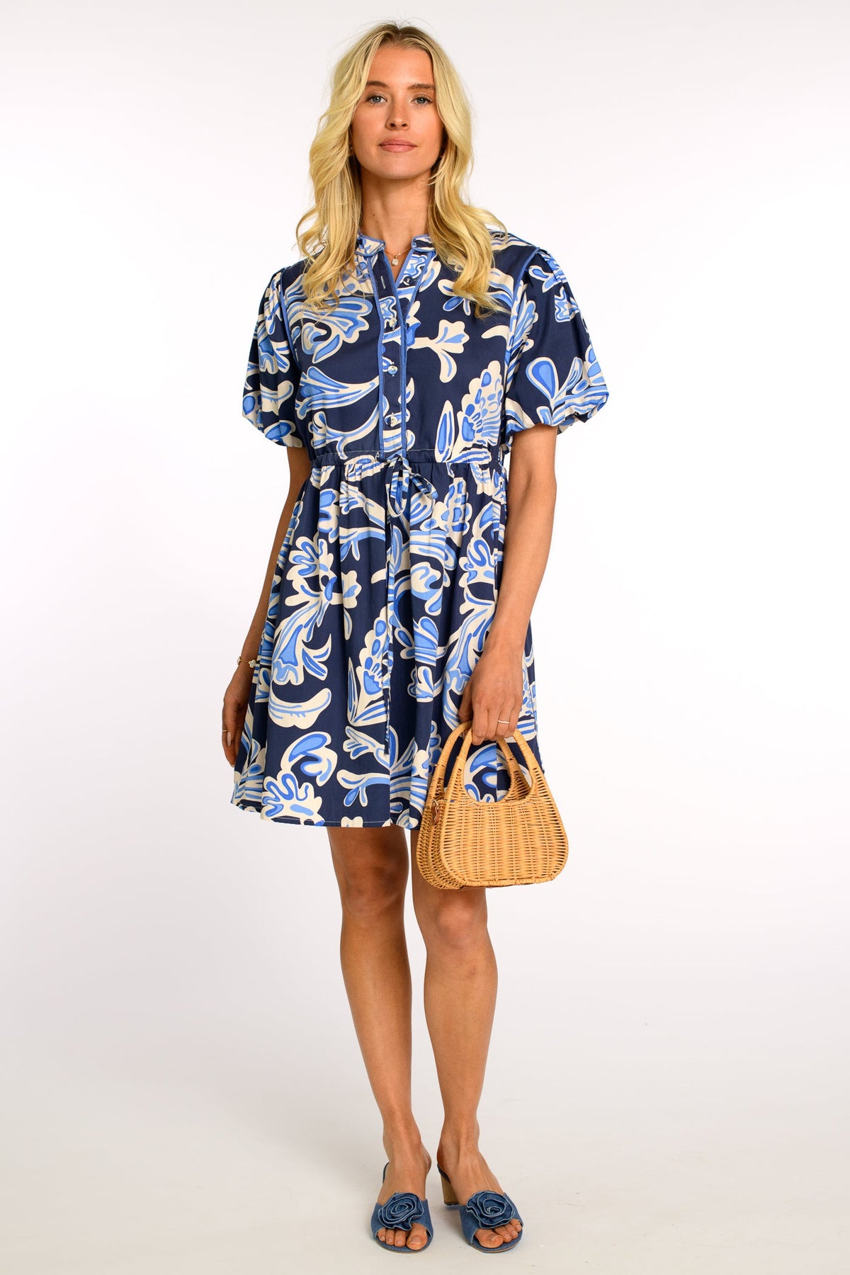Baker Mini Dress in Navy/Ivory Paradise