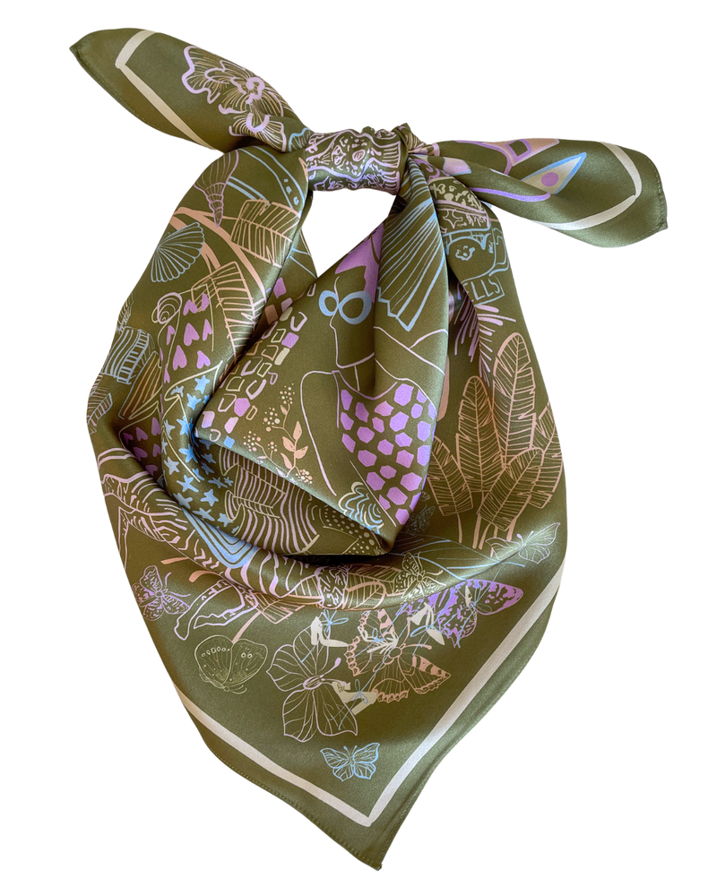 Tea Party Silk Ribbon Twillie Scarf in Green