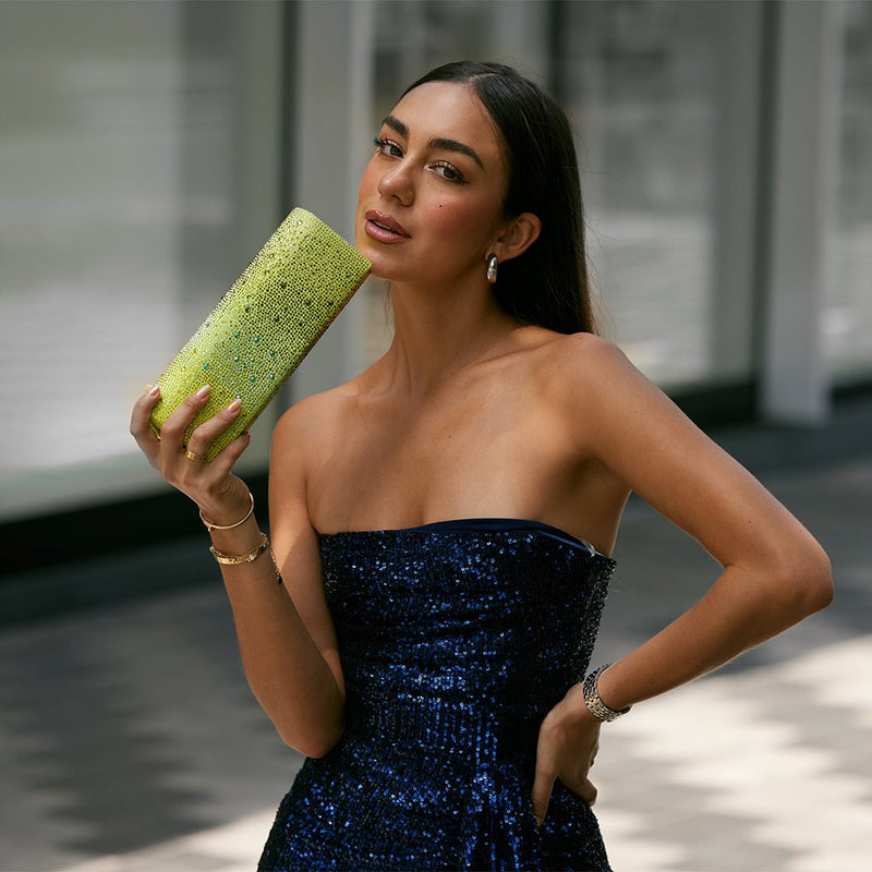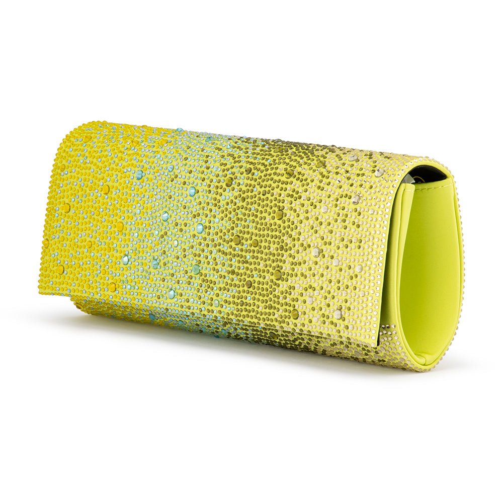 Olga Berg Camille Ombre Hotfix Clutch in Chartreuse