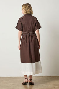 Lilla P Collared Maxi Shirt Dress in Espresso Colorblock