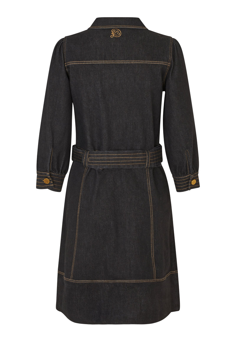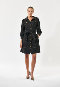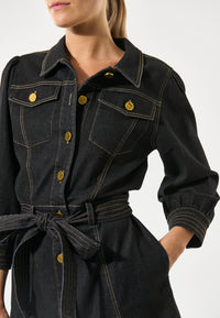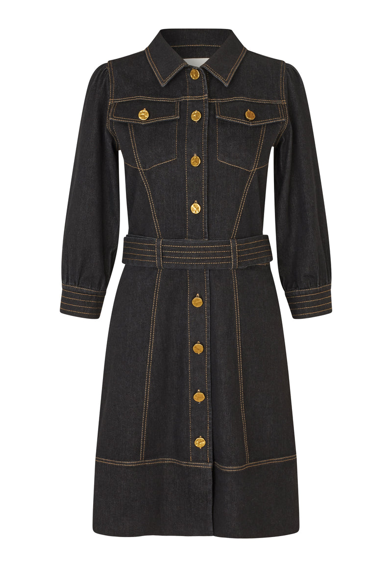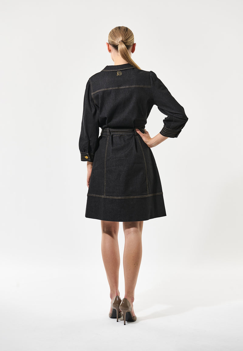 -Dark Denim with Contrasting Stitch and Textured Brushed Gold Buttons