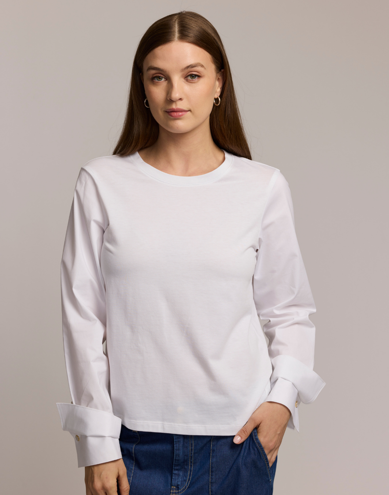 Hinson Wu Reagen Long Sleeve Layering Top in White