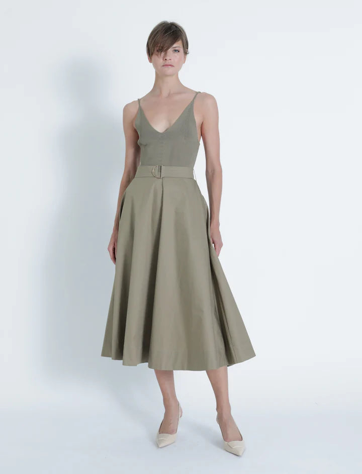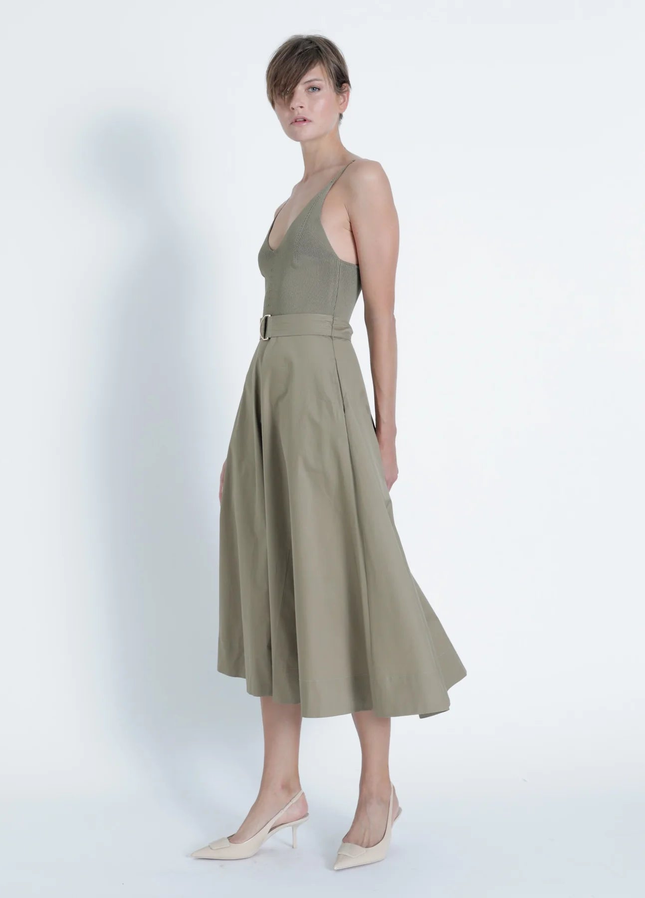 -Fitted Knit Bodice with a Cotton Poplin Skirt