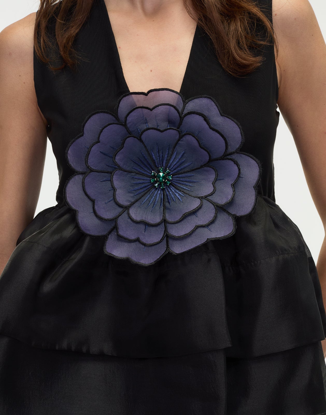 -Organza Embroidered Flower with Crystal Detailing