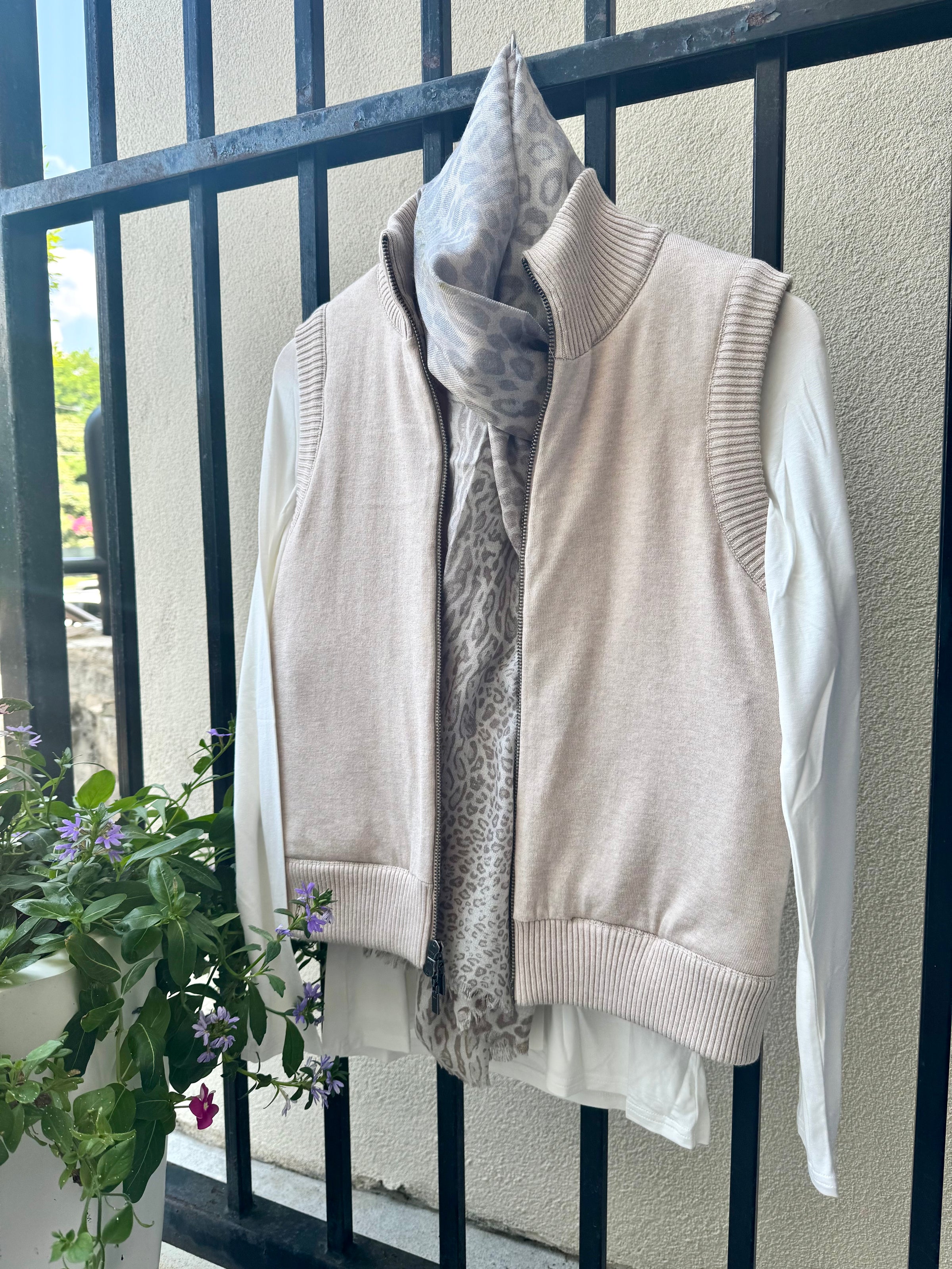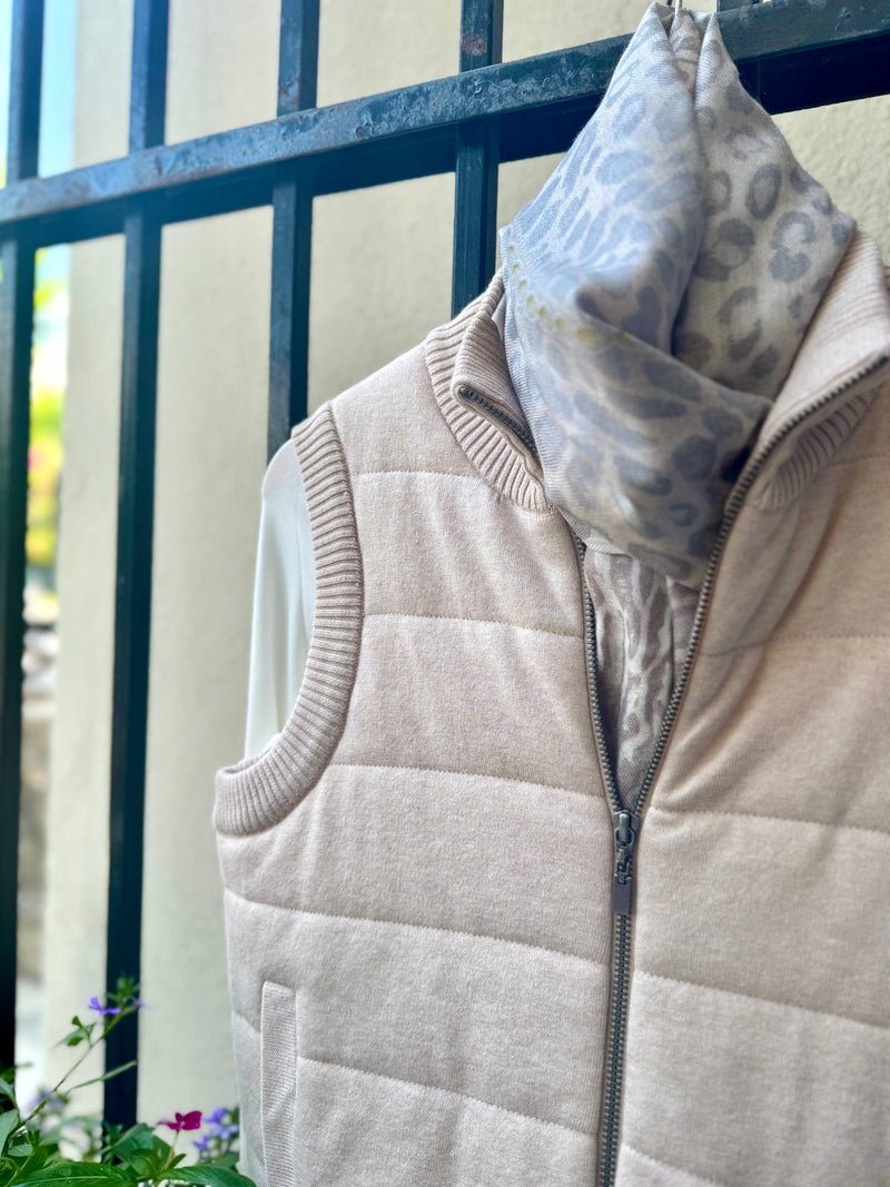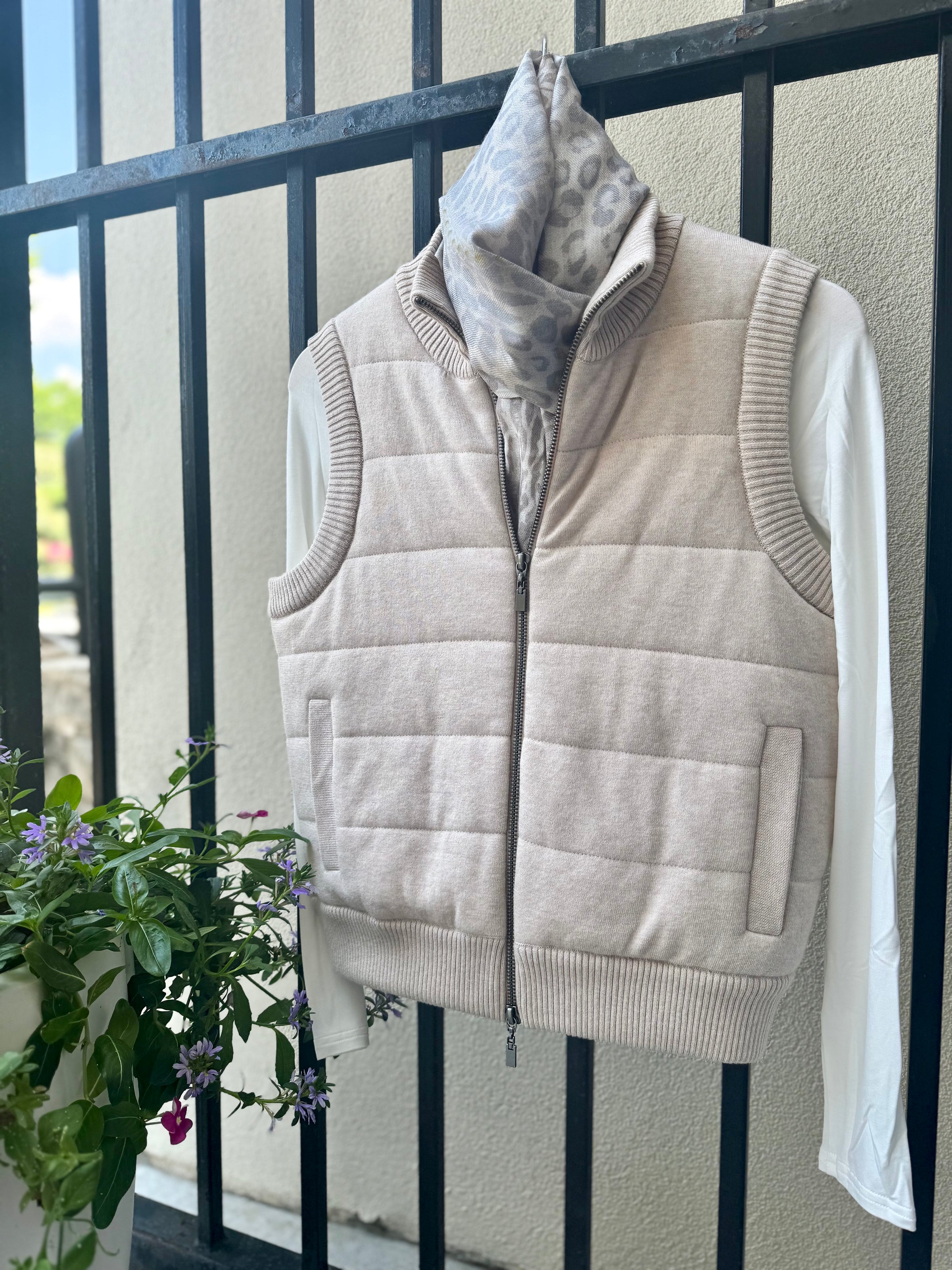 Kinross Cashmere Reversible Quilted Zip Vest in Latte